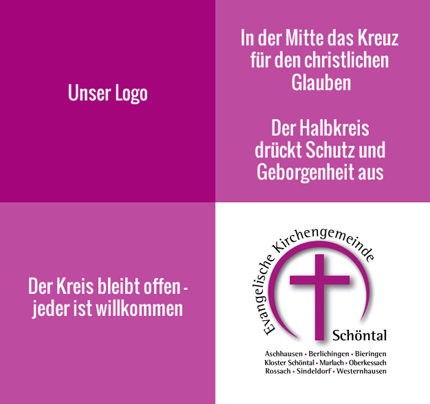 Der Halbkreis drückt zum einen Schutz und Geborgenheit aus, zum anderen steht er für die vielen Ortschaften und Weiler, über die wir verteilt sind.